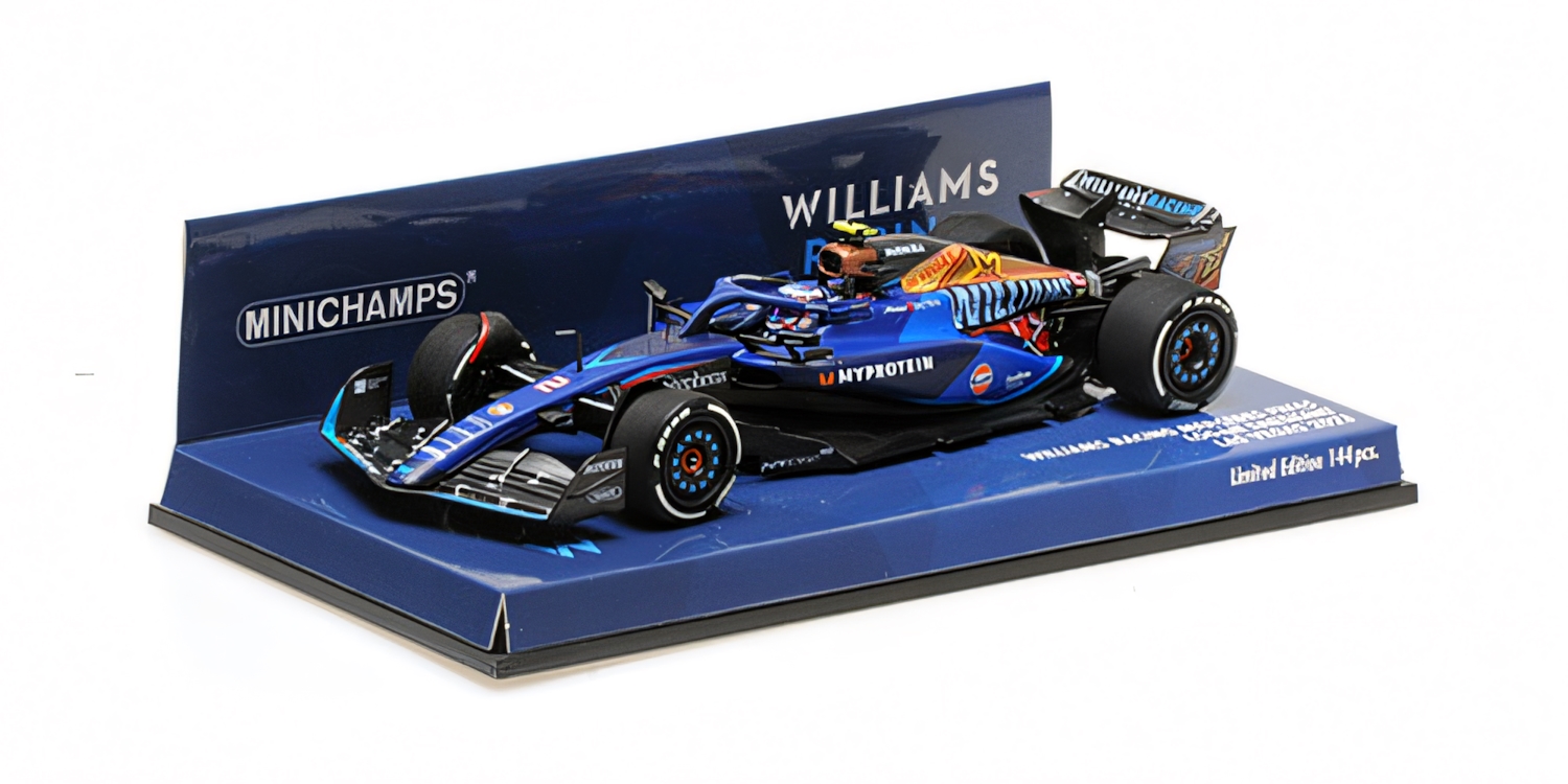 MODELLINO MINICHAMPS MONTATO E VERNICIATO IN RESINA WILLIAMS RACING FW45 LOGAN SARGEANT LAS VEGAS GP 2023 SCALA 1/43
