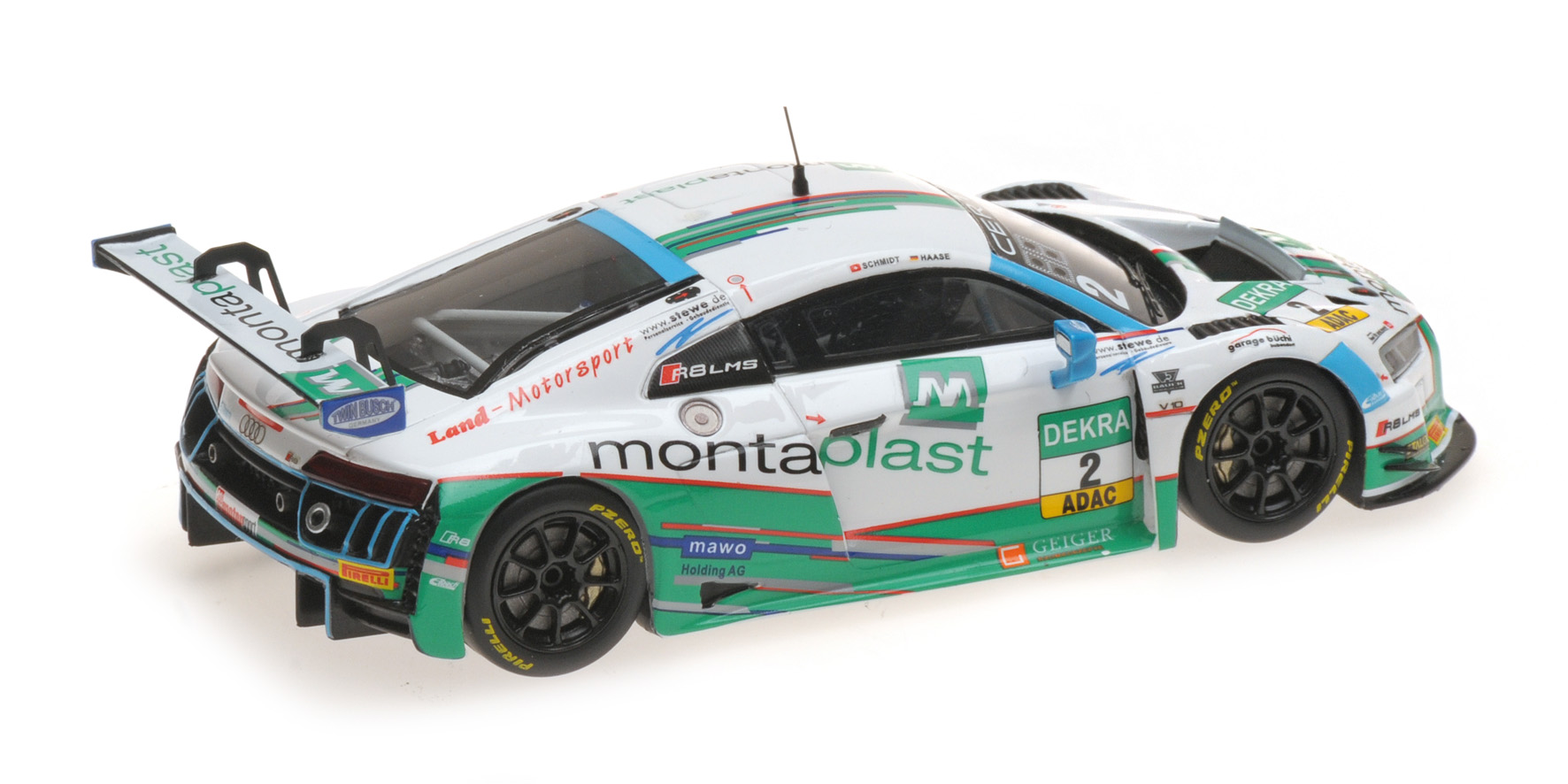 MODELLINO MINICHAMPS MONTATO E VERNICIATO IN RESINA AUDI R8 LMS MONTAPLAST BY LAND MOTORSPORT SCHMIDT HAASE ADAC GT MASTERS 2017 SCALA 1/43