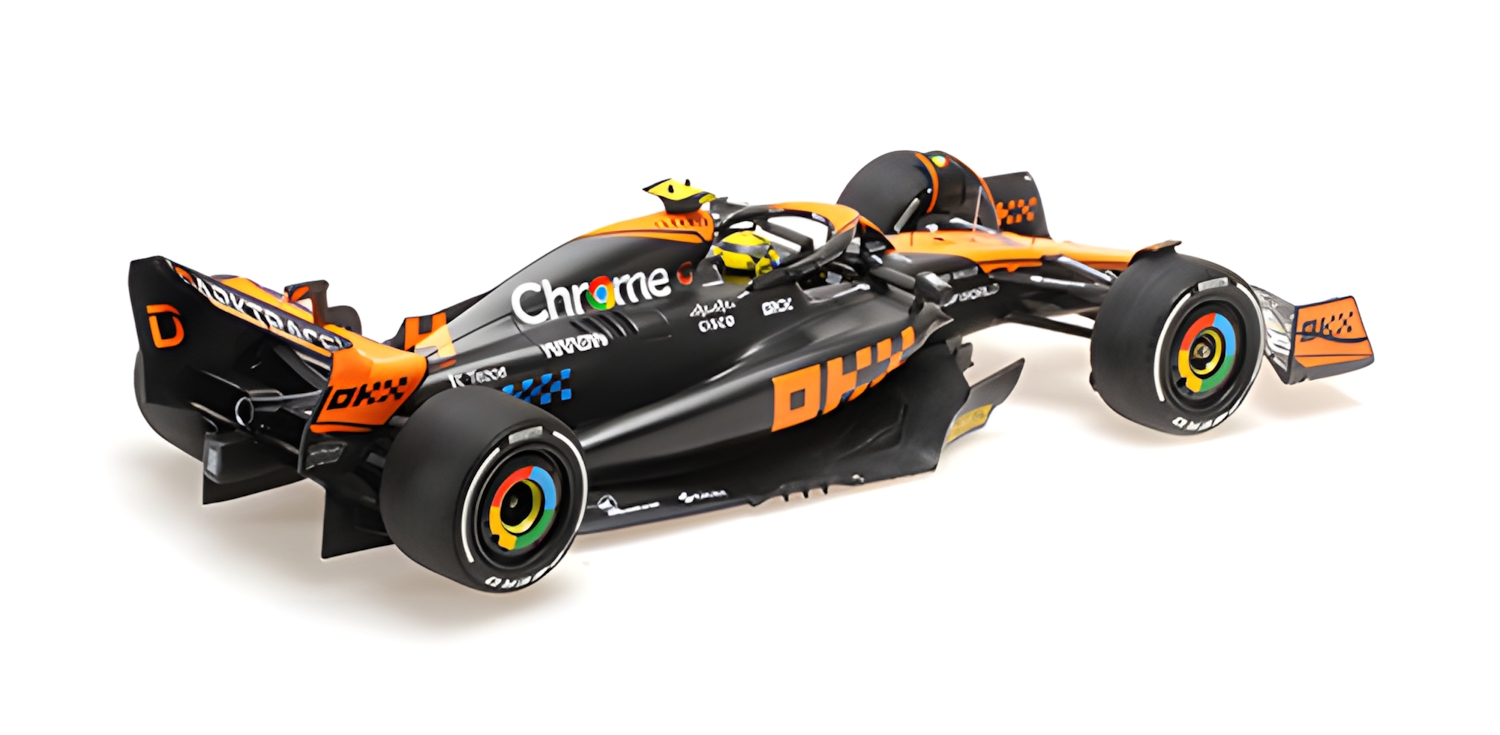 MODELLINO MINICHAMPS MONTATO E VERNICIATO IN RESINA McLAREN MCL60 LANDO NORRIS 2ND PLACE JAPANESE GP 2023 SCALA 1/18