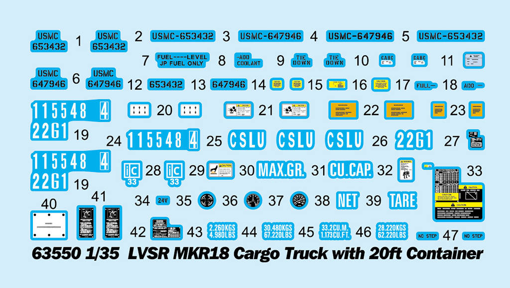 SCATOLA DI MONTAGGIO IN PLASTICA I LOVE KIT LVSR MKR18 CARGO TRUCK WITH 20FT CONTAINER SCALA 1/35 COLLANTE NON INCLUSO DIMENSIONI: 325.2 x 107.4 mm 680 PARTI IN PLASTICA