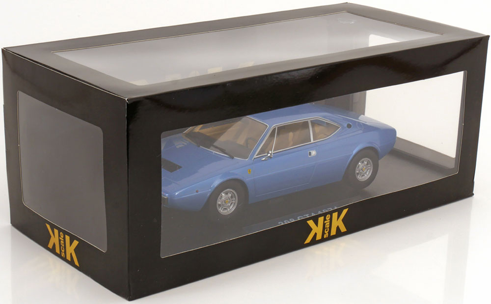 MODELLINO KK-SCALE MONTATO E VERNICIATO IN METALLO FERRARI 308 GT4 LIGHT BLUE METALLIC 1974 SCALA 1/18