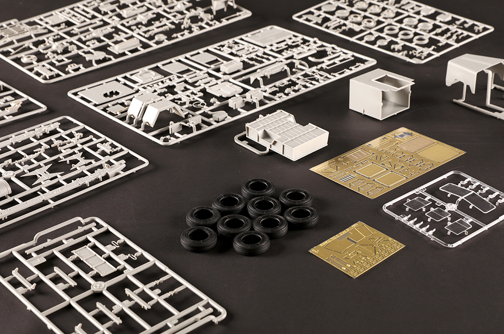 SCATOLA DI MONTAGGIO IN PLASTICA TRUMPETER M915 GUN TRUCK SCALA 1/35 COLLANTE NON INCLUSO DIMENSIONI: 195.8 x 78.7 mm 260 PARTI IN PLASTICA