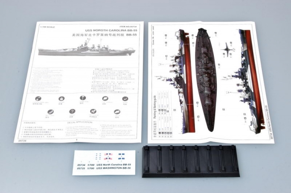 SCATOLA DI MONTAGGIO IN PLASTICA TRUMPETER USS NORTH CAROLINA BB-55 SCALA 1/700 COLLANTE NON INCLUSO DIMENSIONI: 317.5x47.5 mm 261 PARTI IN PLASTICA