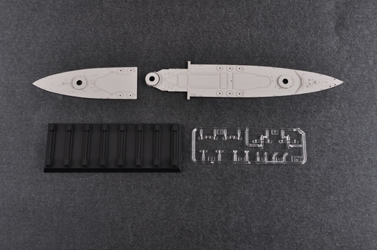 SCATOLA DI MONTAGGIO IN PLASTICA TRUMPETER HMS QUEEN ELIZABETH 1941 SCALA 1/700 COLLANTE NON INCLUSO DIMENSIONI: 281x43.7 mm 300 PARTI IN PLASTICA