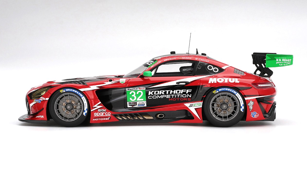 MODELLINO TOP SPEED TSM MODEL MONTATO E VERNICIATO IN RESINA MERCEDES AMG GT3 EVO #32 KORTHOFF COMPETITION IMSA 24H DAYTONA 2025 SCALA 1/18